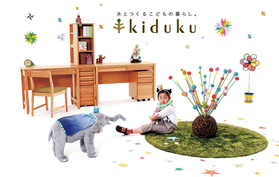 kiduku(キヅク)は、「気づきながら、築いていく」というテーマをもとに生まれた、こどもの暮らしと親子の絆を大切にするブランドです。子供たちが安心して使えるようなやさしい木のぬくもりを感じるインテリアや親子で学べる活動を通して夢を育む暮らしをお手伝いします。